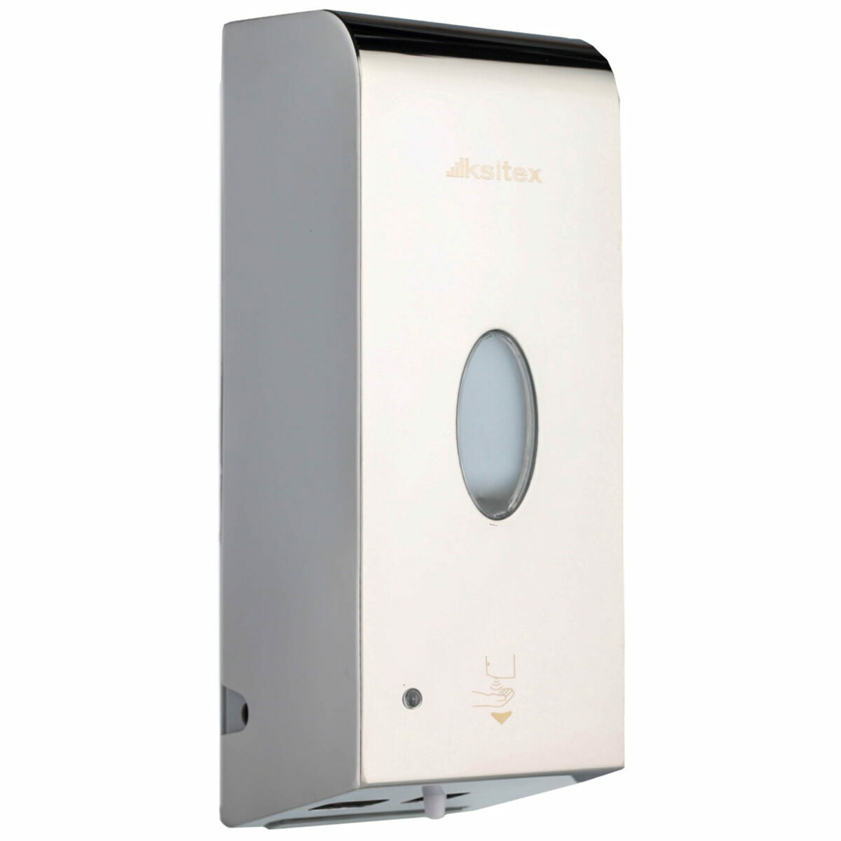 Автоматический дозатор жидкого мыла выполнен из глянцевой нержавеющей стали.