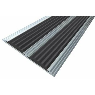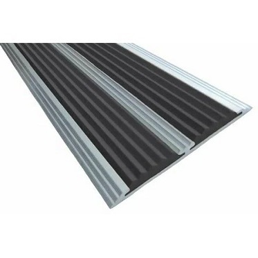 Алюминиевая накладка SAN с двумя вставками предназначена для установки на поверхности ступеней лестниц в качестве противоскользящего профиля для безопасности, а так же, как декоративная отделка.