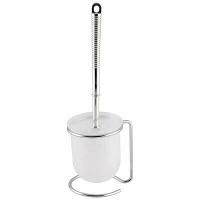 Туалетная щетка на подставке Материал: хромированный металл, пластмасса Размеры: 10*12*37 см Туалетная щетка имеет: ручку из хромированного металла, белую щетку с жестким густым ворсом, пластиковую подставку под щетку, которая крепится при помощи напольного металлического держателя из хромированного металла, устойчивого к высокой влажности.