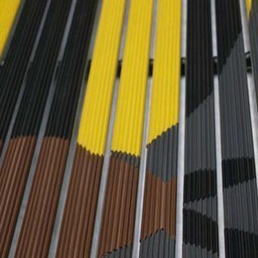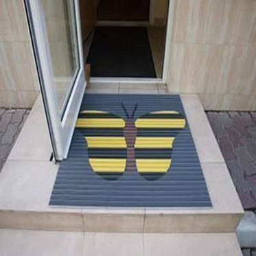 Стильно и элегантно должны выглядеть не только входные покрытия в вестибюле, но и со стороны улицы. Для того, чтобы грязезащита уже на первой ступени не только чистила обувь посетителей, но радовала глаз, наша компания производит входные грязезащитные покрытия из алюминиевого профиля с логотипами.