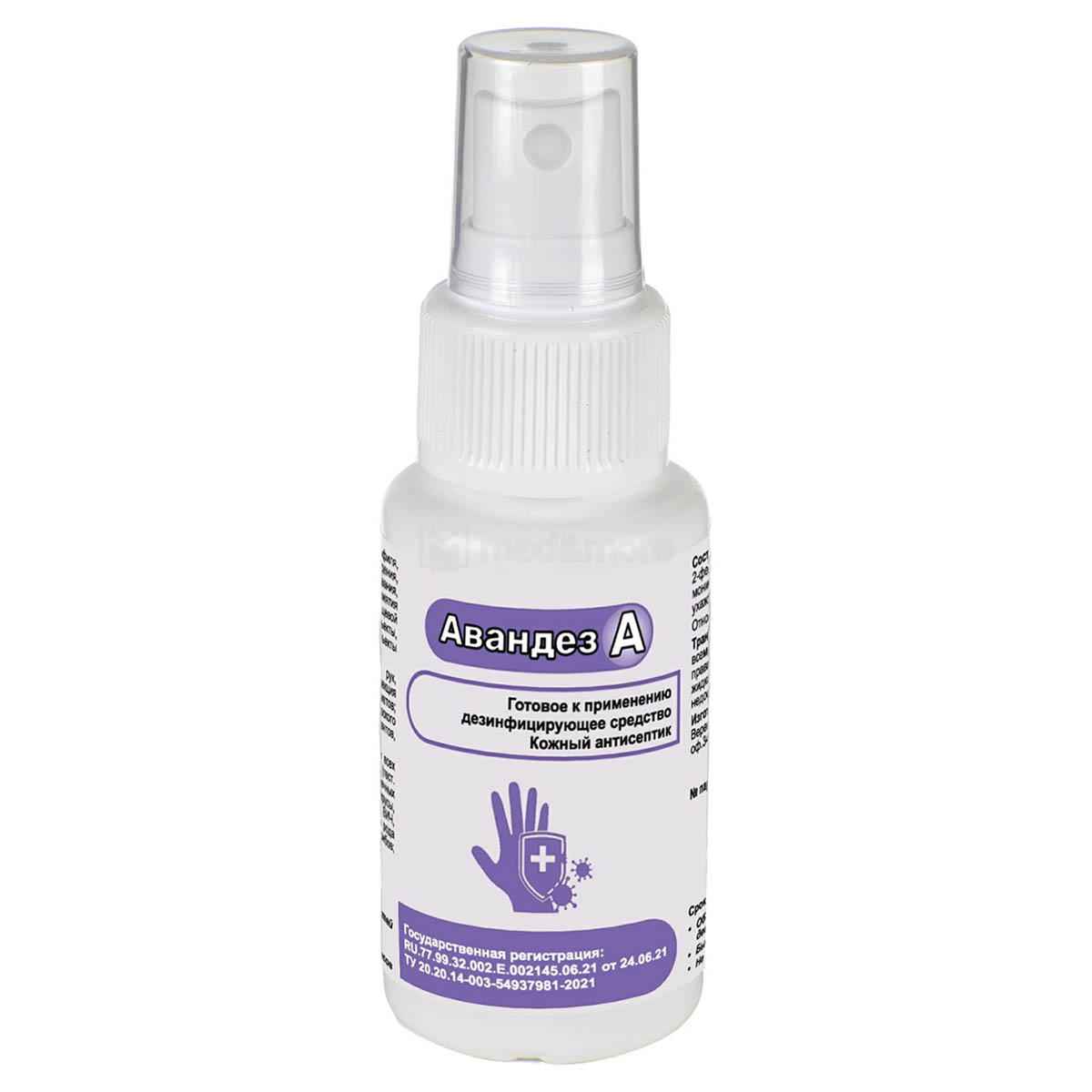 •Дезинфицирующее средство Авандез-А 50 мл в качестве действующих веществ содержит: изопропиловый спирт – 64,0% алкилдиметилбензиламмоний хлорид - 0,1%, полигексаметиленгуанидина гидрохлорид - 0,1%, увлажняющие и ухаживающие за кожей компоненты и функциональные добавки.