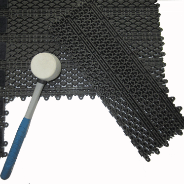 Из модулей можно собрать покрытие с различным комбинациями резиновых модулей и модулей с ковровыми вставками, любой площади.