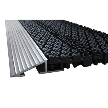 Для удобства прохода потока посетителей, провоза тележек и во избежание загибания краев, покрытие Safe Step можно окантовать алюминиевым порожком.
