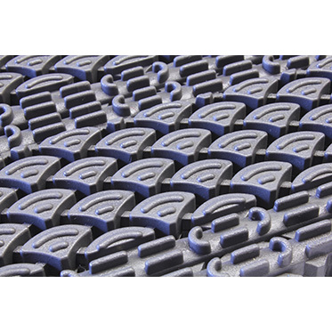 Модульное грязезащитное покрытие имеет открытую структуру с антикаблучным эффектом. Отличительной особенностью покрытия является сочетание резиновых грязезащитных модулей и модулей с ковровыми влаговпитывающими вставками, что позволяет совместить в одном целом покрытии противоскользящий и чистящий эффект с эффектом поглощения влаги.