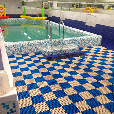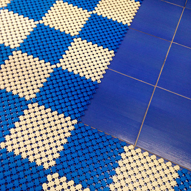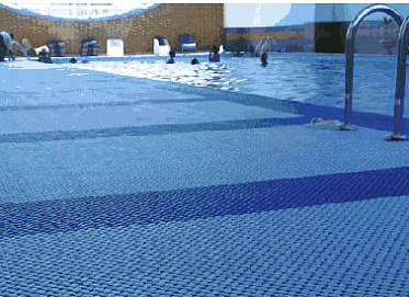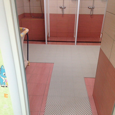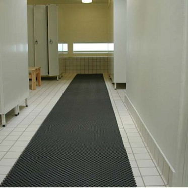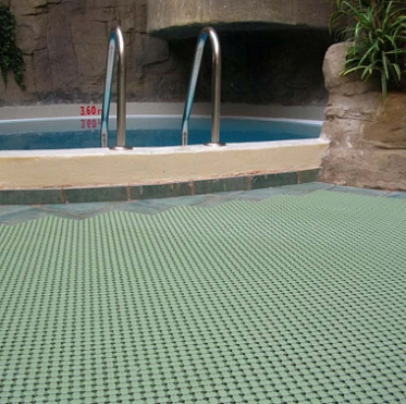 Противоскользящее модульное покрытие идеально подходит для влажных помещений. Оно отлично подойдет для пешеходных зон возле бассейнов, душевых, бань, саун и раздевалок.