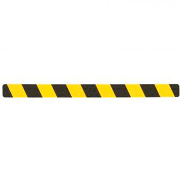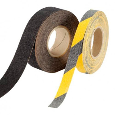 Самоклеящаяся противоскользящая лента с абразивным слоем Safety Trax, выпускаемая голландской компанией Notrax, представляет собой прочную трехслойную износостойкую структуру. На влагостойкую пластиковую основу с внутренней поверхности нанесён каучуковый клей, защищенный от высыхания легкоснимаемой пленкой. Внешняя поверхность ленты представляет собой абразивный материал крупной зернистости черного цвета, обеспечивающий противоскользящий эффект. Ширина ленты составляет 2,5 и 5см, длина – 18 м. В нашем каталоге представлено 4 варианта, которые отличаются только цветом вставки - например, можно выбрать черно-желтую или черную.