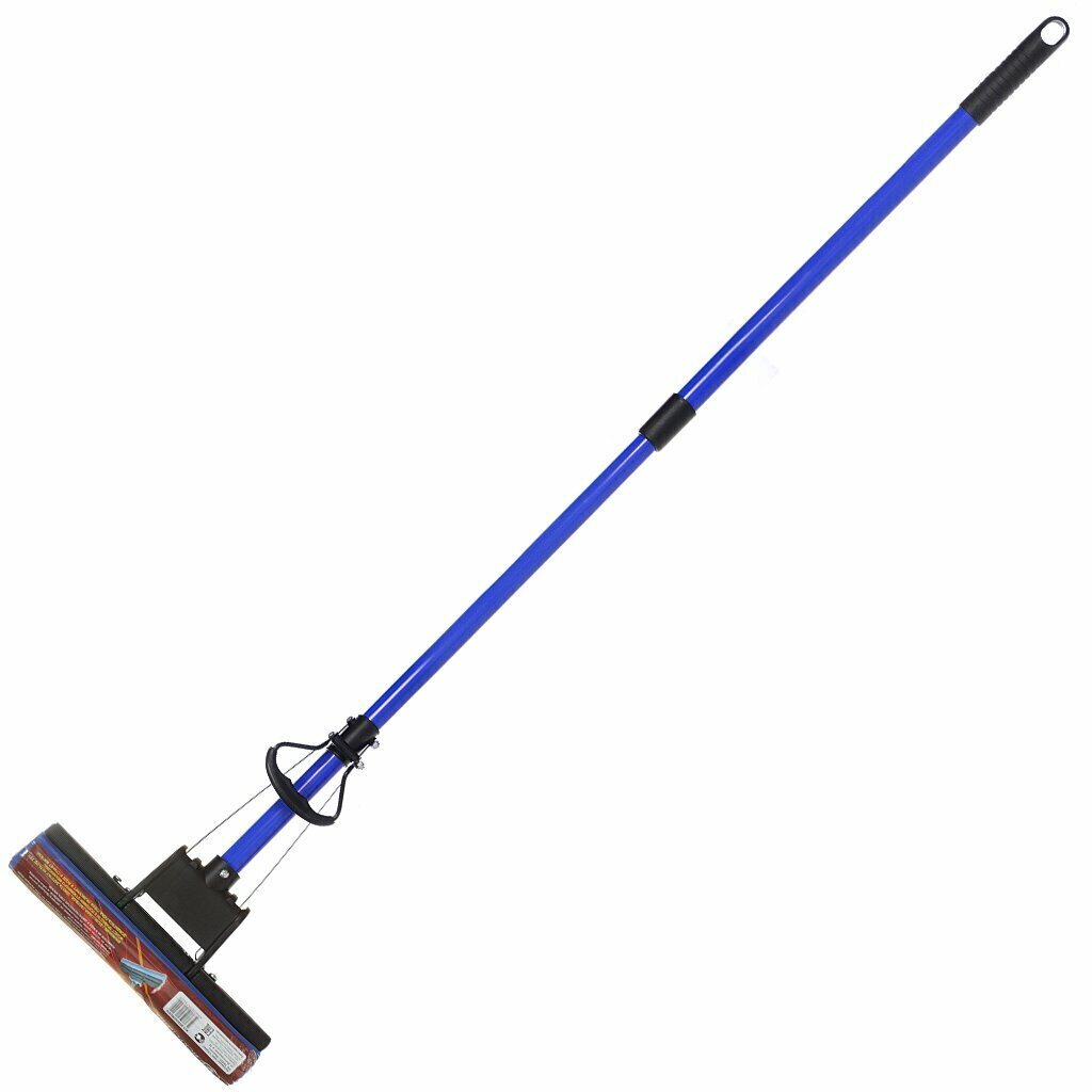 Швабра с отжимом МОП губка, ПВА, 120х27 см, телескопическая ручка, синяя