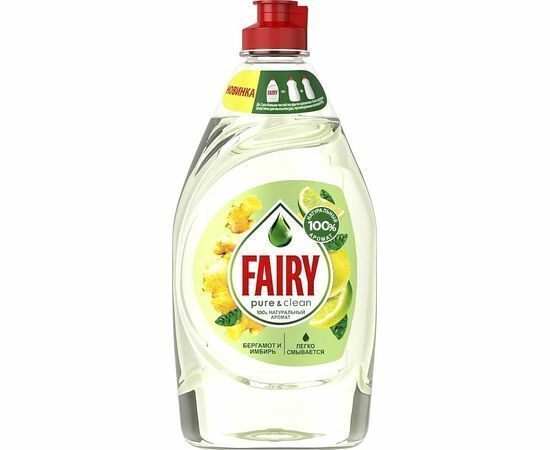 Средство для мытья посуды Fairy Pure & Clean сочетает в себе высокую эффективность Fairy в борьбе с загрязнениями и 100% натуральный аромат имбиря и бергамота из итальянской Калабрии. Активные компоненты Fairy полностью удаляют остатки жира даже в холодной воде, а за счет образования стойкой пены даже одной капли средства хватает надолго. Формула легко смывается и дерматологически протестирована Ассоциацией здоровья кожи (Skin Health Alliance). 100% перерабатываемая бутылка. Обладает сертификатом экологического соответствия.