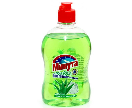 Средство для мытья посуды Минута с алоэ быстро и эффективно удаляет жир и другие загрязнения как в горячей, так и в холодной воде. Средство придает посуде блеск, легко смывается водой и не раздражает кожу рук. Создает обильную пену.