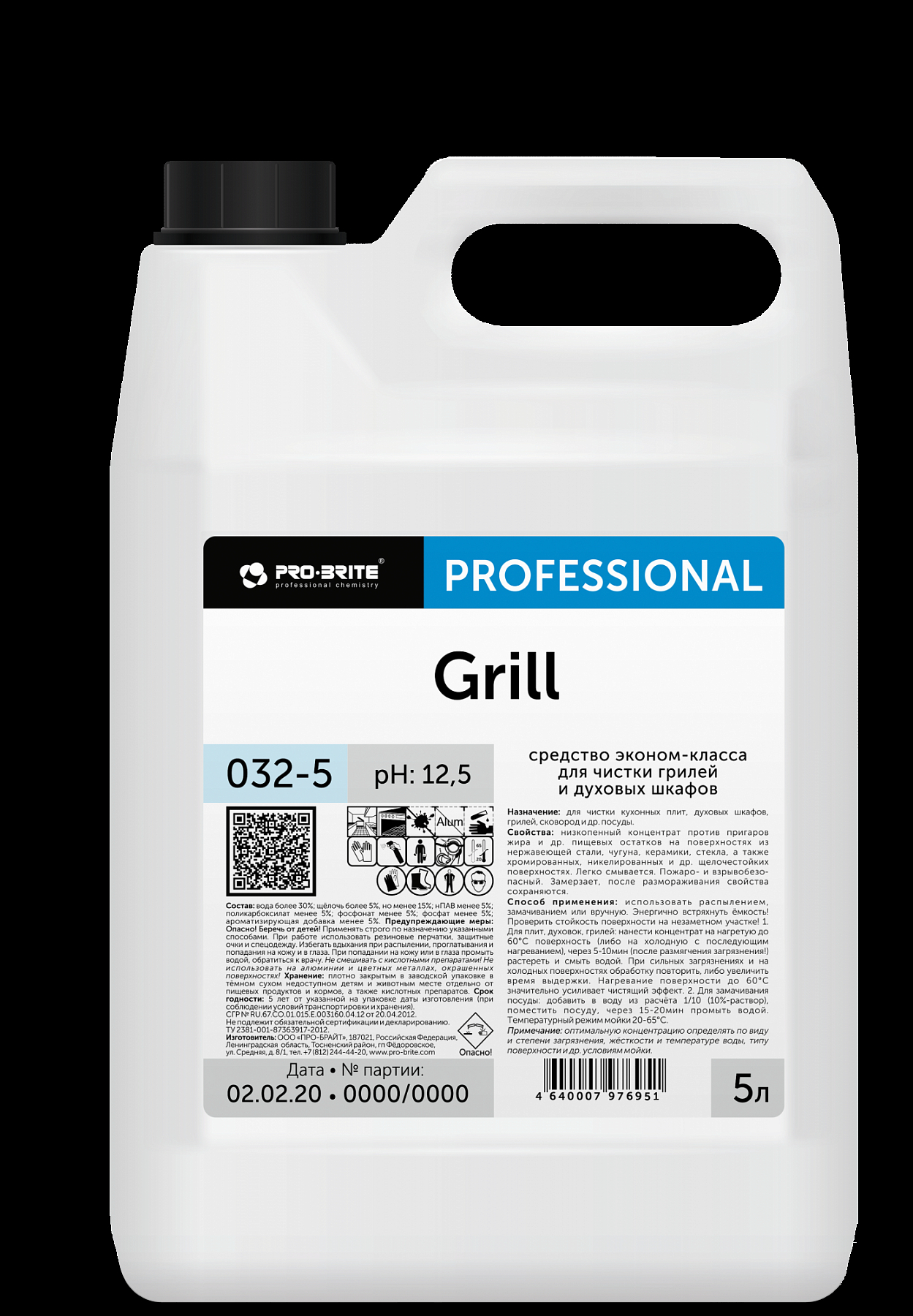 Жидкий низкопенный концентрат против пригаров жира и др. пищевых остатков на поверхностях из нержавеющей стали, чугуна, керамики, стекла, а также хромированных, никелированных и др. щелочестойких поверхностях. Температурный режим мойки 20-85°С.