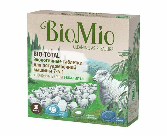 Таблетки для посудомоечной машины BioMio с эфирным маслом эвкалипта, 100 шт. - это экологически безопасный продукт, предназначенный для деликатного и качественного очищения посуды. Средство эффективно удаляет жир, остатки пищи и показывает отличный результат даже в прохладной воде. Стекло и нержавеющая сталь после применения таблеток преображаются - посуда выглядит, как новая. Также таблетки BioMio смягчают жесткую воду, исключают появление накипи на узлах посудомоечной машины. Поэтому техника работает долго и без сбоев. Средство устраняет неприятные запахи.