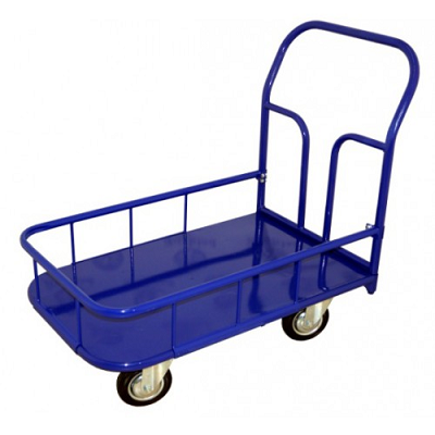 Это удобные и простые конструкции, но в виду отсутствия бортов подходят для транспортировки негабаритных грузов, упакованных в свою тару — коробки, ящики и пр. К преимуществам такого ручного транспорта принадлежат: