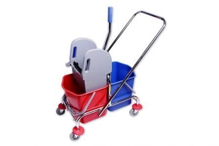 Двухведерная тележка с механическим отжимом на хромированном каркасе. Удобная перекидная ручка позволяет легко перемещать тележку в нужном направлении. Тележка предназначена для уборки любых помещений.