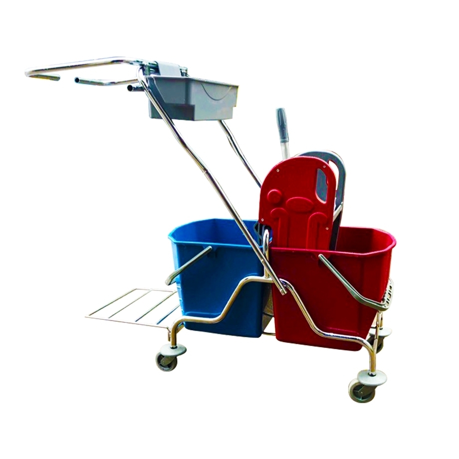Металлический каркас,отжим,пластиковая корзинка и держатель для мусорного пакета.