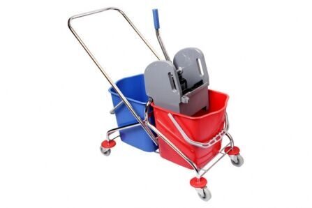 Двухведерная тележка с механическим отжимом на хромированном каркасе. Удобная перекидная ручка позволяет легко перемещать тележку в нужном направлении. Тележка предназначена для уборки любых помещений.