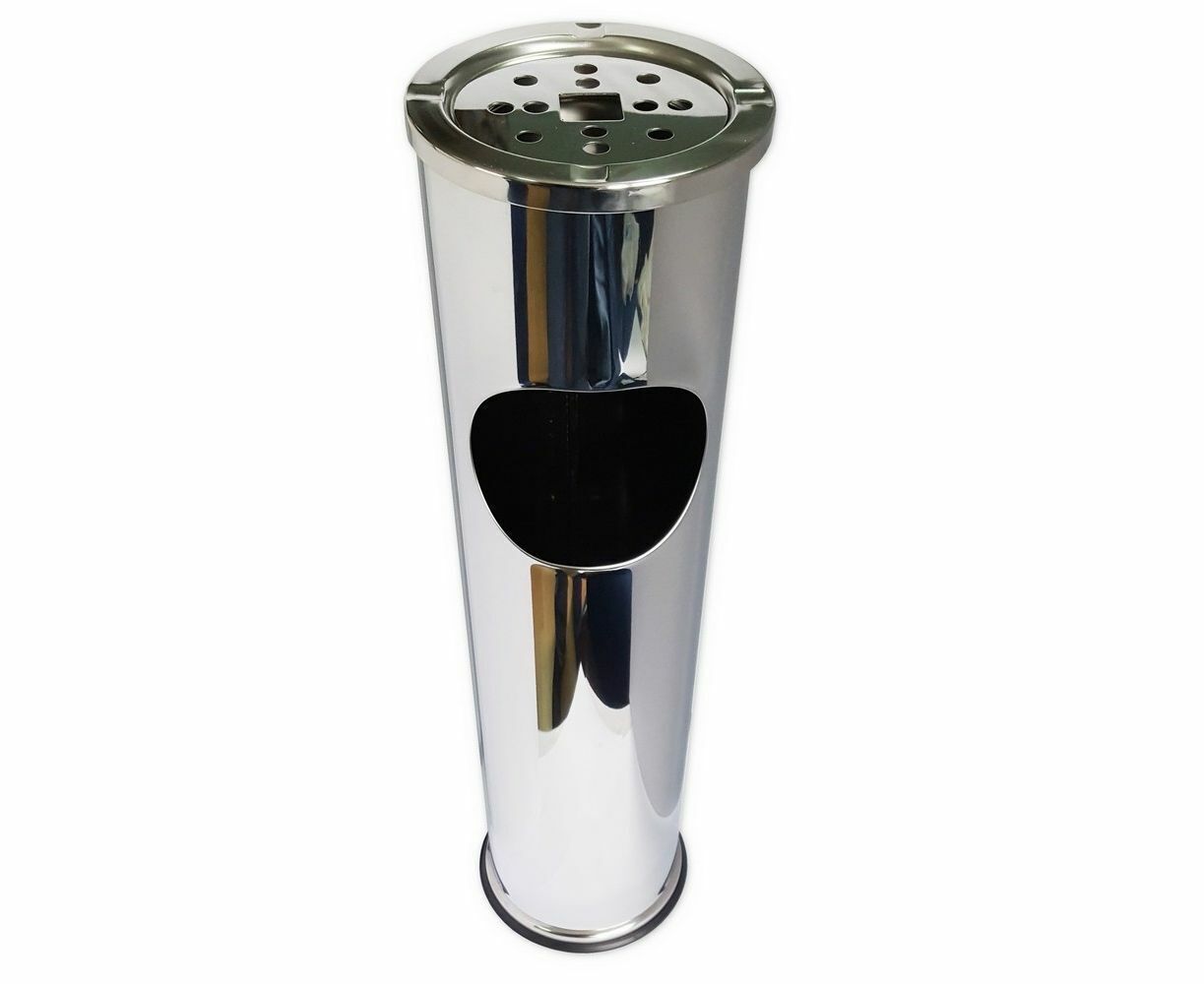 Урна с пепельницей круглая , из нержавеющей стали h - 565мм, диаметр - 145мм. Верх состоит из съемной решетки с емкостью.