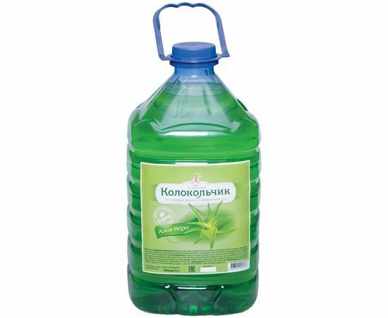 Жидкое мыло «Душистый колокольчик» с экстрактом Алоэ-Вера в ПЭТ канистре объемом 5л. для гигиенической обработки рук общественного персонала в медицинских, детских и других учреждениях и предприятиях общественного питания и пищевой промышленности. Содержит большое количество смягчающих веществ, очищает кожу и оказывает защитное действие от агрессивного воздействия окружающей среды. Не повреждает кожу, гипоаллергенно.